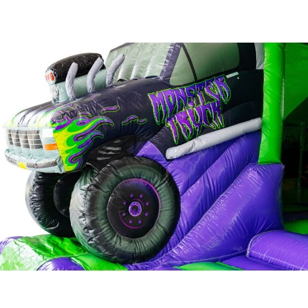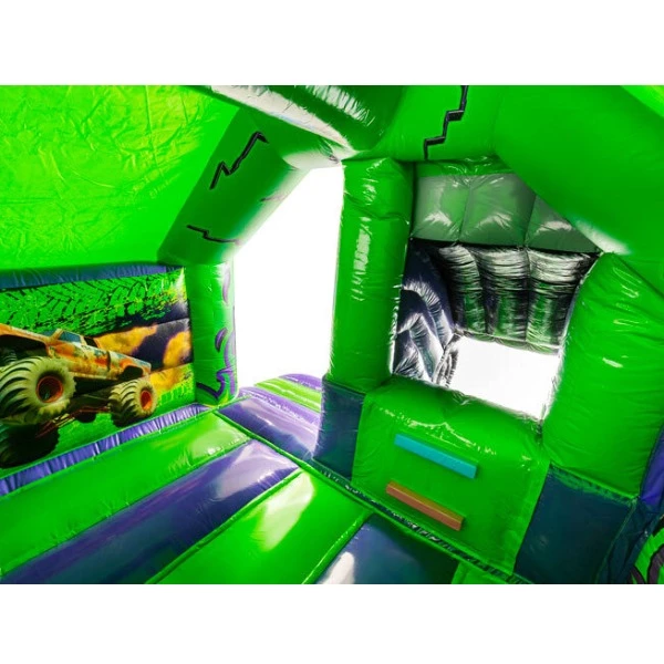 Binnenin is er volop ruimte om te stuiteren, rennen en spelen. De overdekte constructie geeft een knus en veilig gevoel én maakt het springkussen extra geschikt bij wisselvallig weer of felle zon. De wanden zijn bovendien bedrukt met gave monstertruck-illustraties, waardoor kinderen helemaal in het thema opgaan. En alsof dat nog niet genoeg is, heeft dit springkussen ook een glijbaan: klimmen, gieren en glijden maar! Dat maakt het extra leuk, omdat er steeds afwisseling is tussen springen en glijden.